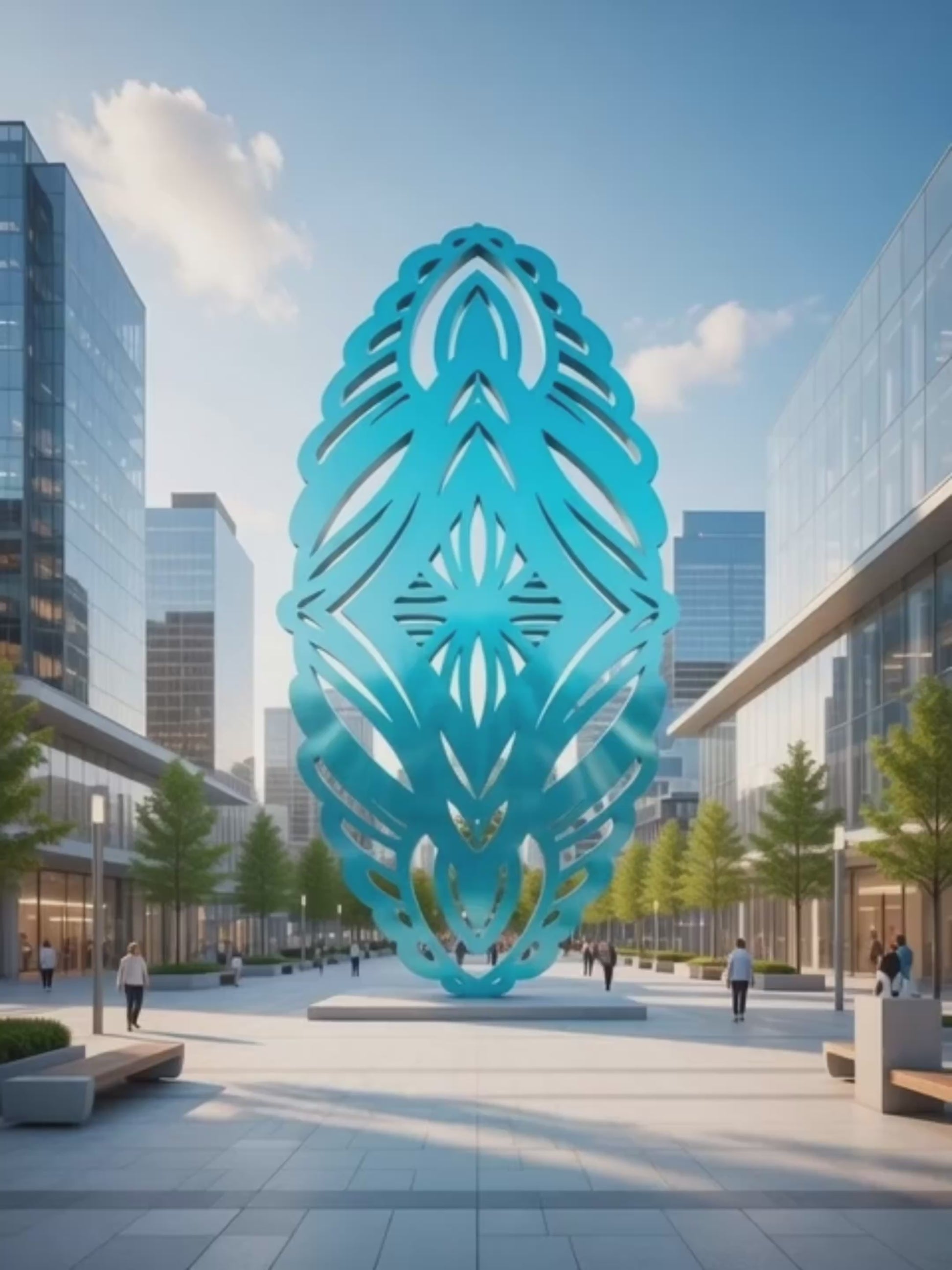 Noether transforms any public space into a destination—its airy, ethereal form invites passersby to walk around and through its base, fostering interaction, reflection, and photography. The turquoise hue stands out boldly against cityscapes, while the intricate patterns reward closer inspection with layers of geometric beauty.